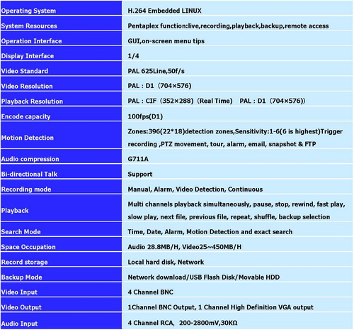 Υποστηρίζει έξοδο για Monitor VGA, RS-485 για κάμερες PTZ και θύρα LAN RJ-45 (10M/100M) στο βασικό εξοπλισμό.